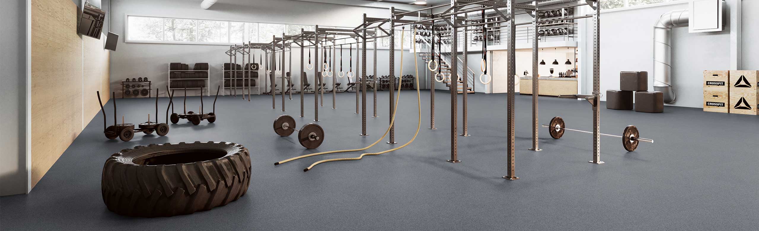 REGUPOL everroll impact is a two-layer flooring for fitness centres with high requirements of training comfort and protection of the sub-base