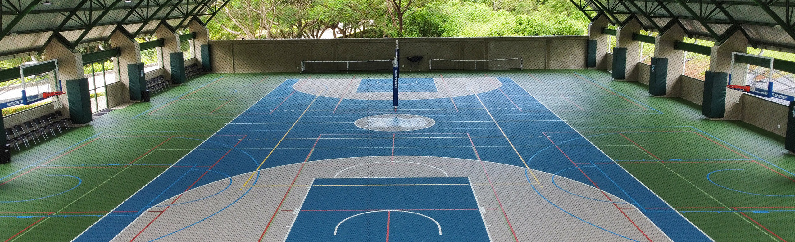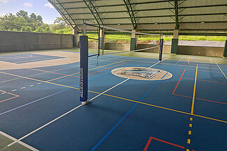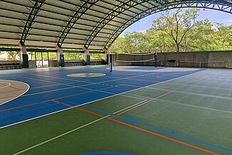 To entrench the spirit of sustainability in their sports activities, too, La Paz School has chosen to work with REGUPOL. In Central and South America, sports facilities are usually built semi-open. This often means without any full length external walls but with an extensive roof overhang. Nevertheless, the floors can still be affected by moisture in extreme weather conditions. So for this project, 1,062m² of our REGUPOL dynamic classic 8+2 floor system were used, because – unlike wood, PVC, linoleum and such – this material is weather-resistant. It also has a range of other benefits to offer: it’s very durable, slip-resistant, provides protection for the athletes and has good ball rebound characteristics. And with its seamless polyurethane wear layer, this floor is extremely easy to clean and maintain.