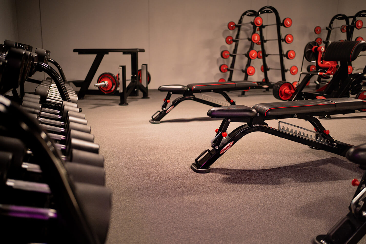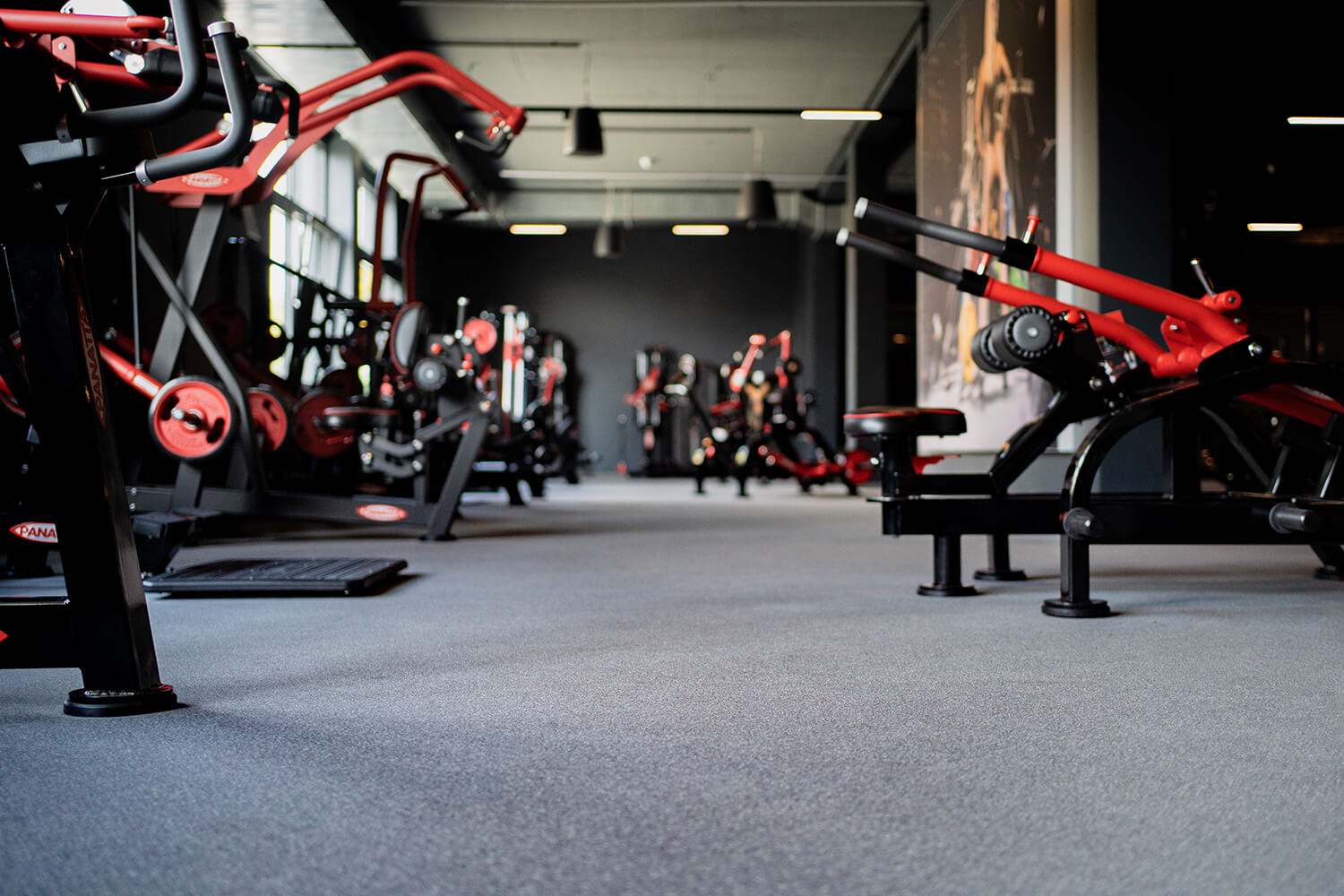 REGUPOL supplied the two-layer REGUPOL everroll impact flooring back in 2020. The gray flooring in the ultimate Pompeii design enhances the studio's ambience. The neutral color allows the red accents of the equipment and the bright LifeForce Fitness logo on the wall to really stand out.