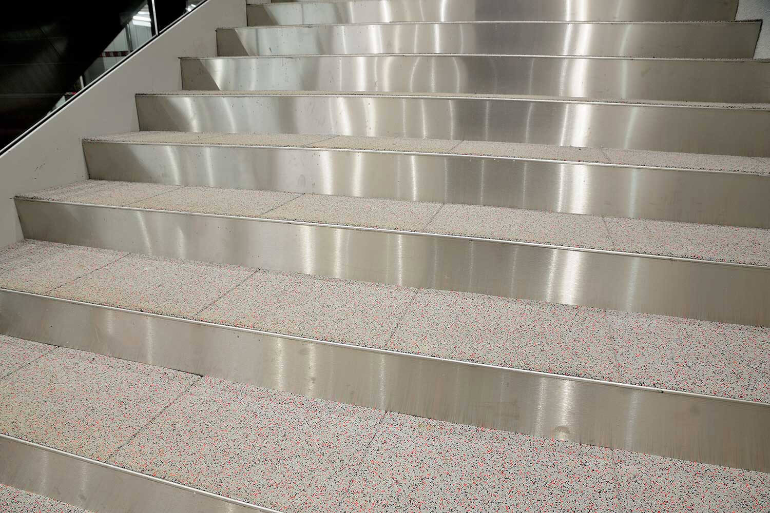 - Installation of tiles and rolls in the Pardatschgratbahn valley station, Ischgl, Austria