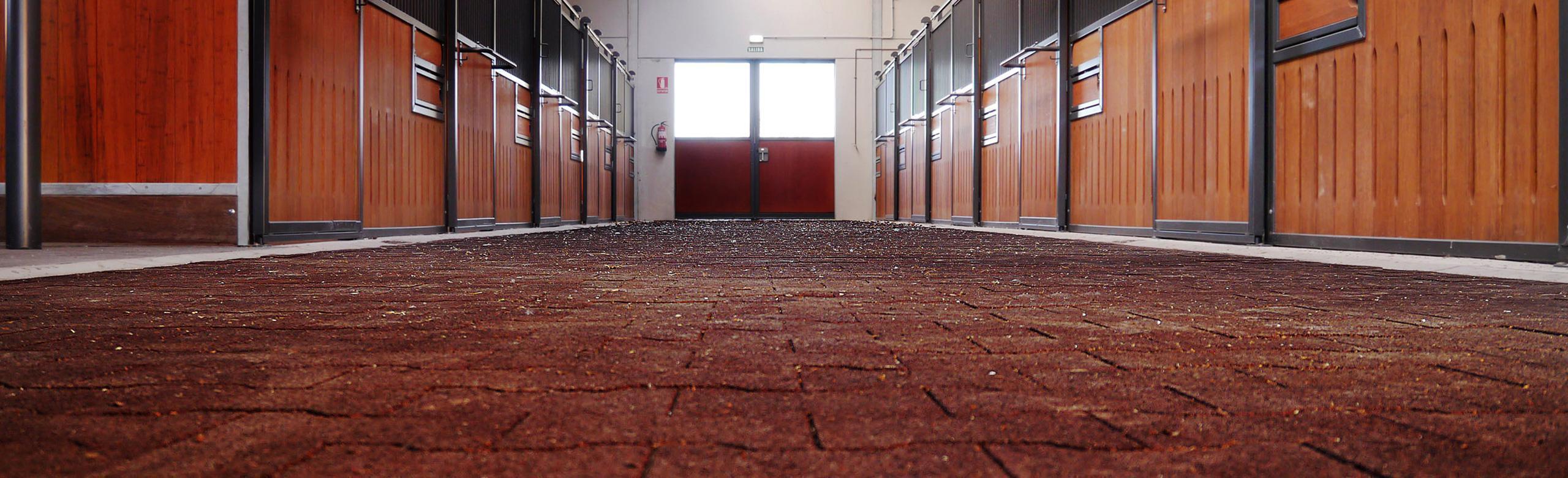 - REGUPOL equestrian floorings for stable aisle and horse walker, for walls in boxes and in wash bays