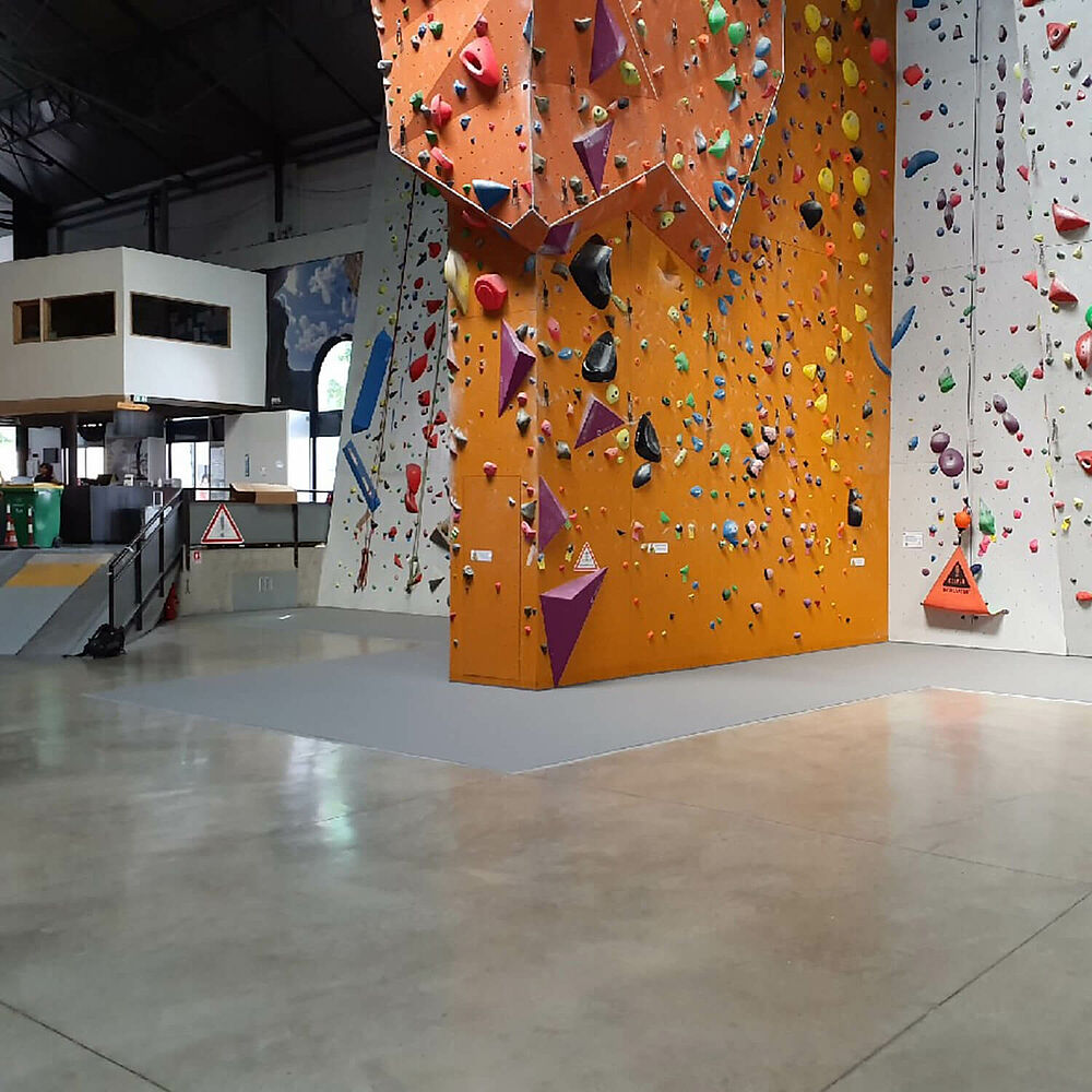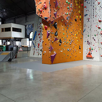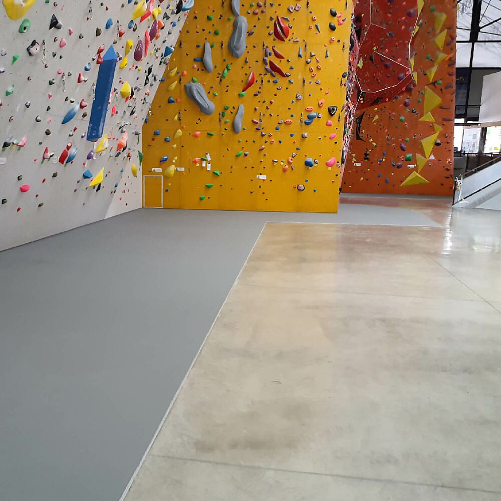The customer had clear ideas about the floor they wanted. It needed to be seamless, safe and easy to clean; characteristics that REGUPOL systems have been providing in climbing facilities for over ten years. Finally, at an on-site meeting in Grenoble, both sides discussed the structural adjustments that had to be made in the existing hall so that replacement of the previous floor solution with REGUPOL could be carried out as smoothly as possible - an indispensable service that the "Espace Vertical" team greatly appreciated. Various parts of the floor surface in safety-relevant areas were then adapted to guarantee that REGUPOL climb 77 fitted the project perfectly.