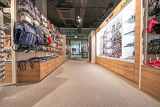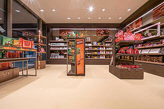 Our beige REGUPOL everroll alpin floor covering in the Lindt Shop fitted in with the colour concept. It harmonises well with the furniture and the dark wall design. The Lindt shop is located in the Grindelwald terminal, surrounded by other shops and the entrances to the cable cars. Our floors may look good, but they can also withstand a lot of wear and tear. They are robust, impact sound-absorbing and durable as well as shock and impact resistant.